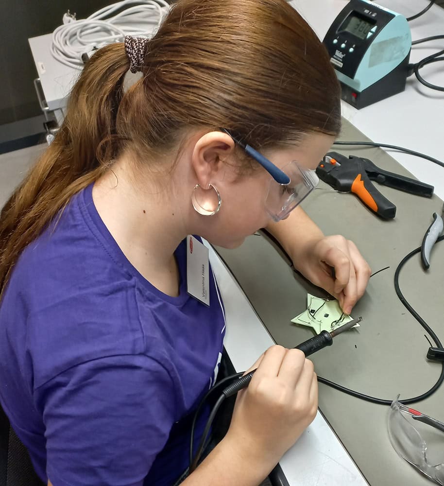 Im Anschluss ging es weiter zur Firma Fronius nach Sattledt. Nach einer kurzen Pause mit Getränken und Obst absolvierten die Powergirls mehrere Programmpunkte. Dazu gehörte eine Werksführung, die von einem Lehrling durchgeführt wurde. Außerdem stellten die Mädchen unter Anleitung von Lehrlingen einen beleuchteten Weihnachtsstern durch Löten her. Zum Abschluss konnten sie sich bei einem Technik-Geschicklichkeitsspiel messen. Vielen Dank an Frau Claudia Zehetner und die Firma Fronius für den abwechslungsreichen Nachmittag und die tollen Geschenke, die sich die Mädchen mit nach Hause nehmen durften.