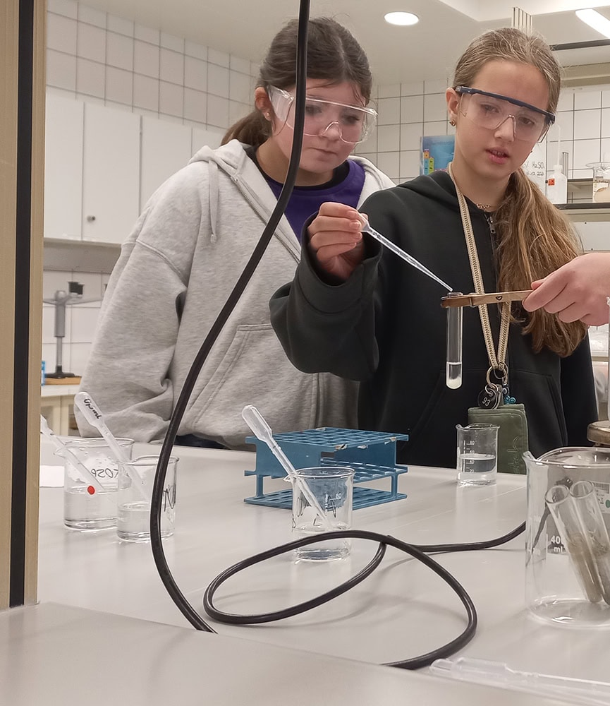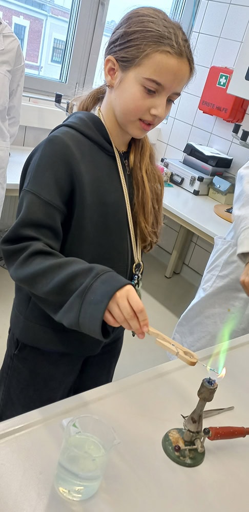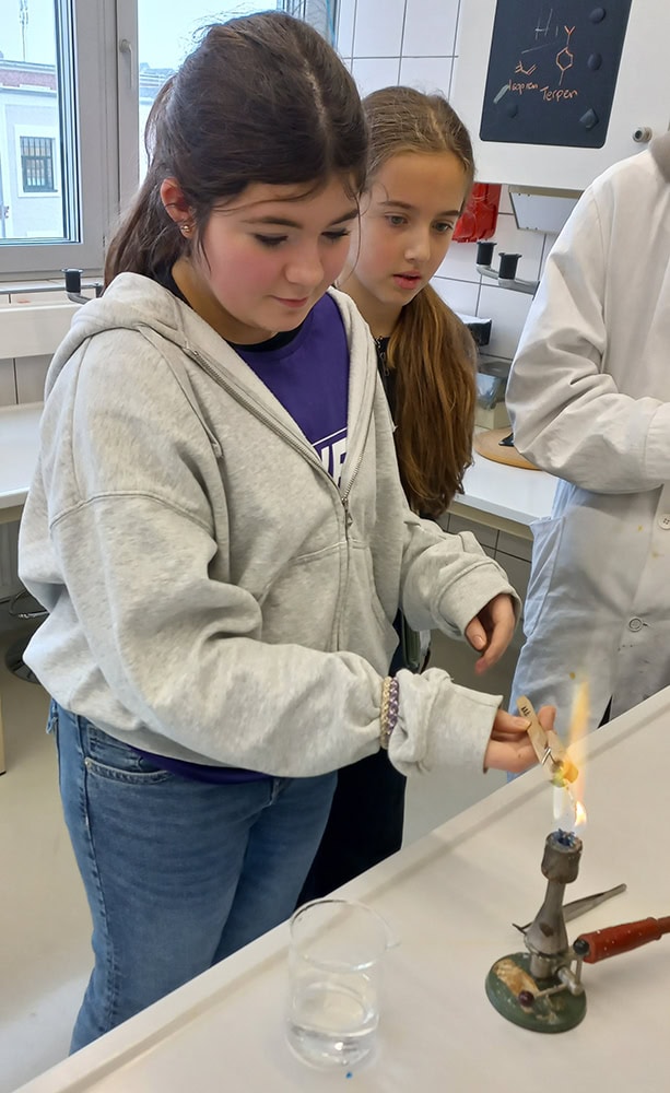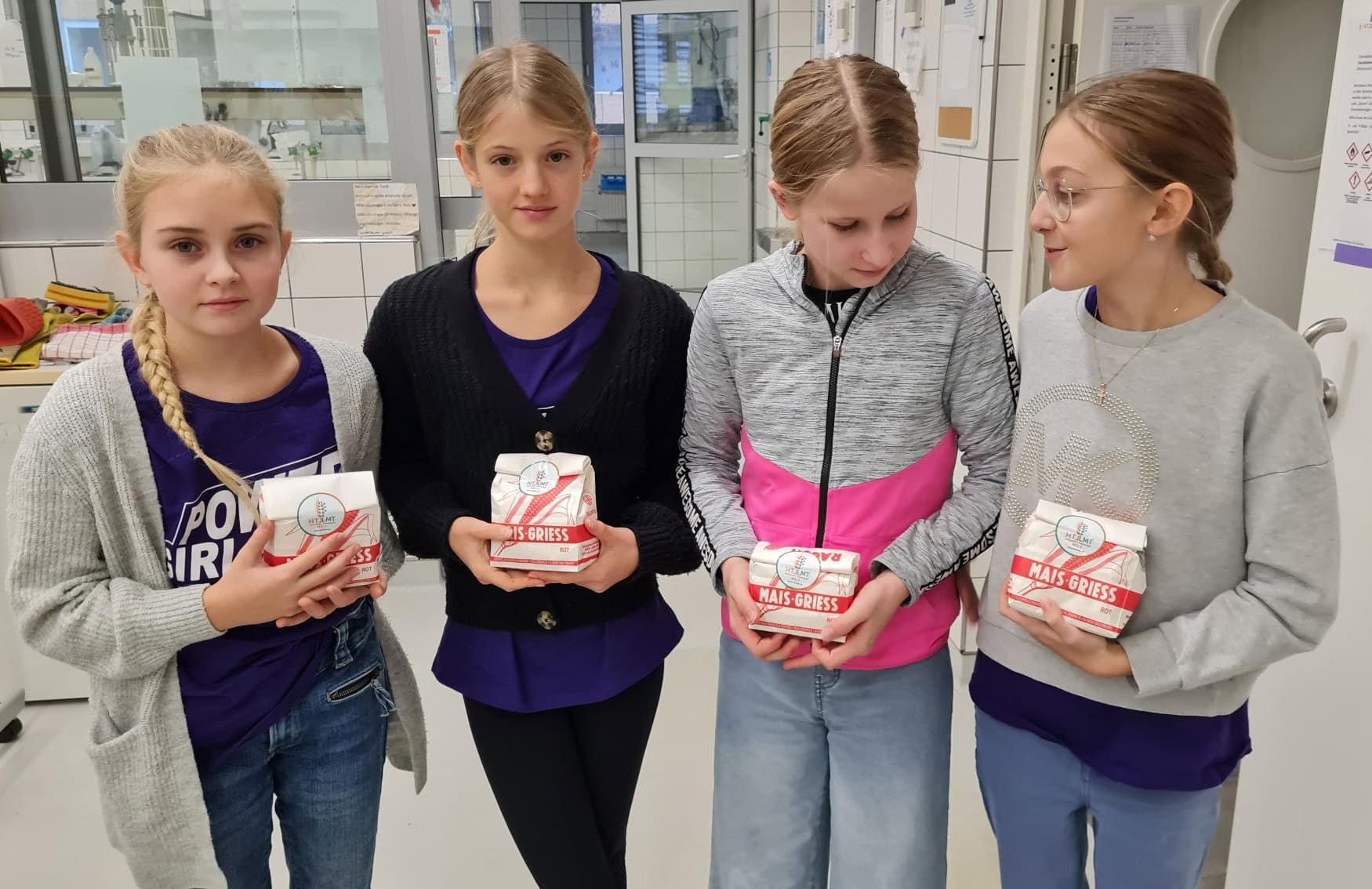 Dort wurden die Schülerinnen herzlich empfangen und mit Gebäck versorgt. In mehreren Gruppen konnten sie an verschiedenen Stationen arbeiten und experimentieren. Sie mahlten Getreide, stellten Slime her, mikroskopierten Proben, extrahierten bzw. zerlegten Farben aus Pflanzen, versilberten bzw. entfärbten Münzen mithilfe von Reagenzmitteln und erkundeten eine Mühle. Die Versuche wurden von Schülerinnen und Schülern der HTL unter Aufsicht ihrer Lehrkräfte durchgeführt. Zusätzlich wurde die Schule vorgestellt, wodurch die Teilnehmerinnen Einblicke in die Ausbildungswege erhielten. Die Gruppen aus den verschiedenen Schulen arbeiteten dabei gemeinsam.