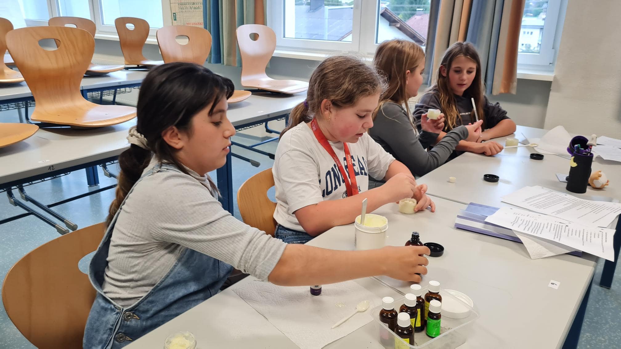 Im praktischen Teil stellten die Powergirls ihre eigene Hautcreme her. Mit viel Neugier und Experimentierfreude lernten sie, wie verschiedene Zutaten wirken und miteinander kombiniert werden können. Besonders kreativ wurde es beim Auswählen der Duftnoten: Jede durfte selbst entscheiden, welche Düfte sie verwenden möchte, sodass ganz individuelle Cremes entstanden.